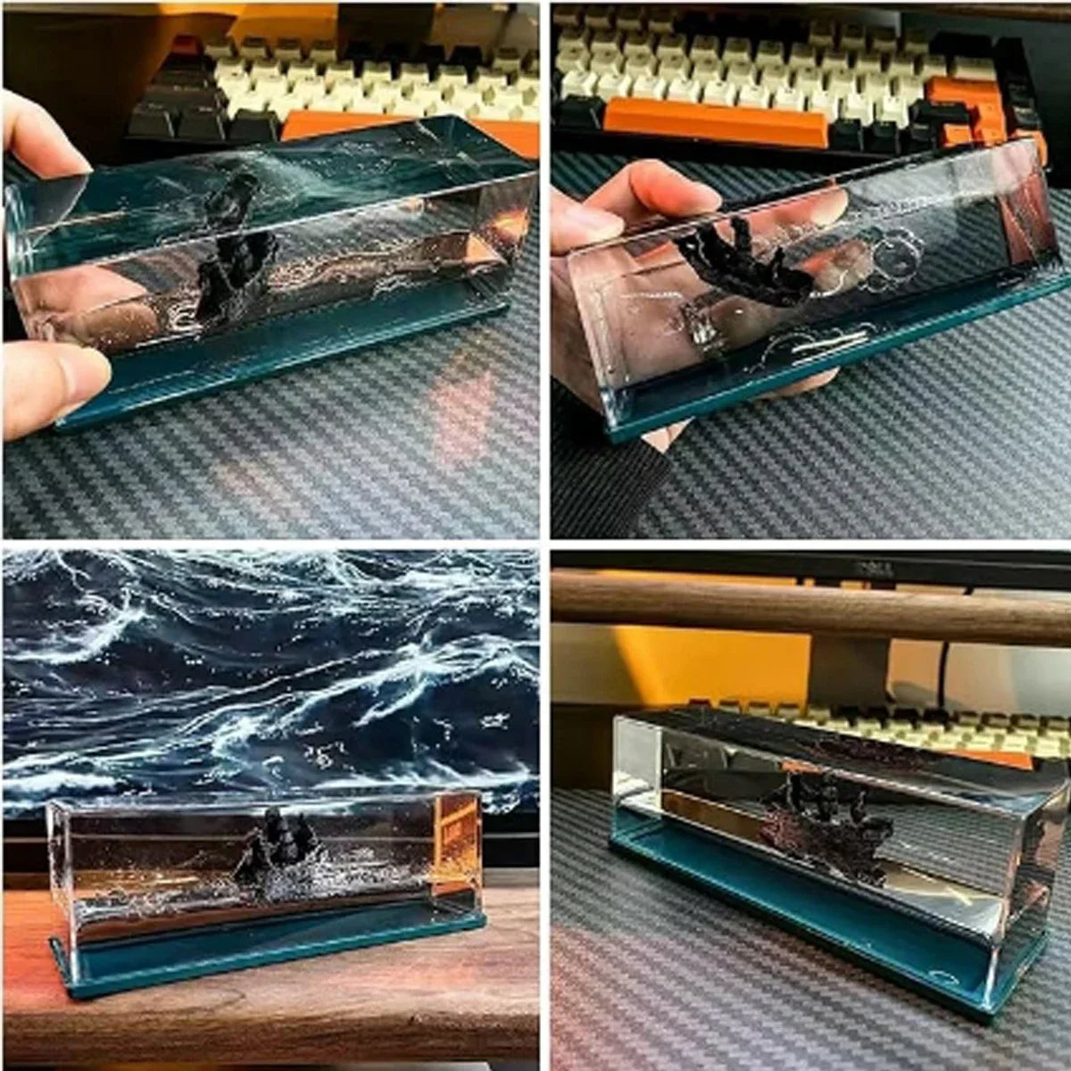 Made with a durable acrylic outer shell and a resin core, the ship floats in a mixture of pure water and vegetable oil—guaranteeing it never sinks.